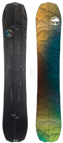 "You see its beautiful Real Wood Eucalyptus powerply? Yeah, it's kind of "our thing." The Cosa Nostra features our R.A.P. "Rise Above Plastics" top for added durability and snow shedding, while weight and waste are reduced! With a shape inspired by some of the most popular surf silhouettes, coupled with..."