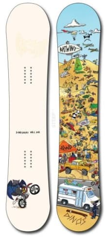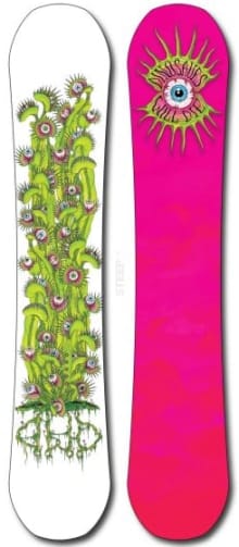 "There’s enough room for two on this one. The Geeves is a sexy wide-bodied board for all of you big-footed boarders lookin’ to slide on a Dino. Even though it’s wide, it’s not too aggressive: the Geeves is one sexy board with a finesse that will show you a good..."