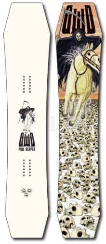 "Again and again, the Pow Reaper is the board of choice for those in pursuit of enhancing their powder day experience to a level that could only have been negotiated with the pale rider himself. Riser camber packed with a Carbon-V in the nose and a tapered profile keep you..."