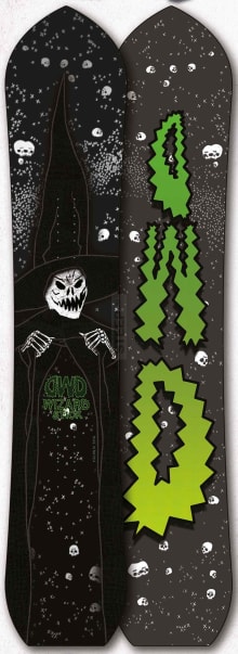 "Even 666 inches of snow couldn't stop the all-mighty Pow Reaper! Riser camber packed with a Carbon-V in the nose, on a chassis with 25mm of taper makes the Pow Reaper the King/Queen in it's class. The only thing left to worry about is how everybody else is going to..."