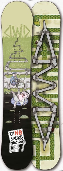 "There's enough room for two on this one. The Geeves is a sexy wide-bodied board for all of you big-footed boarders lookin' to slide on a Dino. Even though it's wide, it's not to aggressive; the Geeves is one sexy board with finesse that will provide what you need no..."
