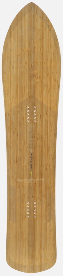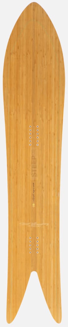 "The world-record class nose width provides the float. The short length ensures super-swift moves. The bamboo-core promises a strong snap-back and the deep fish-tail a distinct maneuverability. The super-short and super-fat outline assures an extraordinary carving ability and an incredible sense of speed.