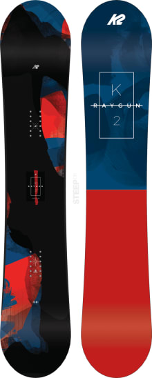"Tried and true, the Raygun is the ideal board for the rider looking for performance in a variety of snow conditions. Constructed using K2’s carbon infused ICG 10 Glass, the Raygun feels stable, lively, and powerful while the directional rocker allows for catch free transitions and smooth edge-to-edge handling.