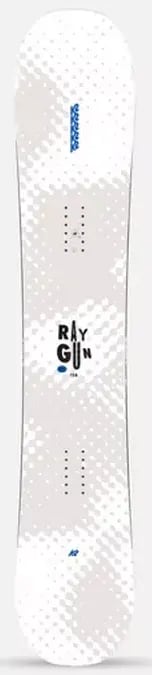 "The K2 Raygun combines a classic directional twin shape and progressive Combination Camber Profile that takes on all comers, and is the perfect ally for ripping down open powder fields, perfectly spaced tree runs, or your favorite line in the park. To keep the Raygun predictable and focused on progression,..."