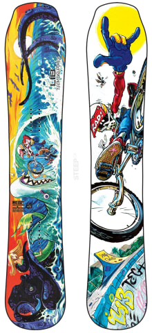 "The Skate Banana’s revolutionary, award winning “Banana Tech” rocker/camber contour re-defined modern snowboarding. This fun easy to ride, high performance dream stick rips hardpack, carves ice, jibs and floats effortlessly in powder. The perfect board to progress on whether you are just getting started or a pro stacking clips."