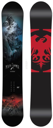 "Bred to be the CEO of Shred this carving machine utilizes a seven contact point sidecut, maximum effective edge, and is handcrafted specifically for Never Summer’s Chairman of the Boards. Our most extensive damping system stabilizes the ends of the board for unmatched high-speed stability and trench digging performance. On..."