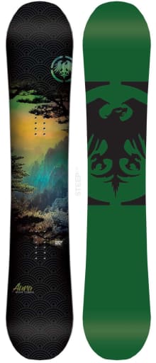 "The Aura features our hard-charging Ripsaw Rocker Camber Profile. This trendsetter has a mid-firm flex, directional shape, Power Grip Sidecut, and enhanced stability with a sleek shape. If you have the need for speed, big beautiful carves, or big mountain riding then surround yourself with the Aura. *Base designs and..."