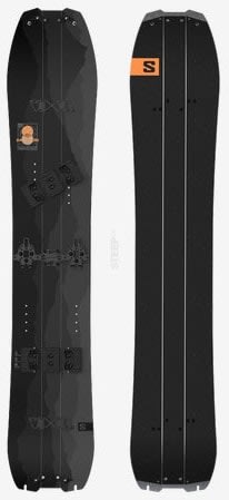 "The Premiere Split is our most innovative splitboard. This 4-piece splitboard allows for two sections to be folded and packed away, reducing volume and weight underfoot for technical ascents. The Premiere is built with recycled and bio-sourced materials and comes equipped with Plum hardware and custom-cut Pomoca Skins."