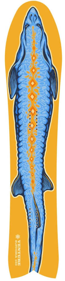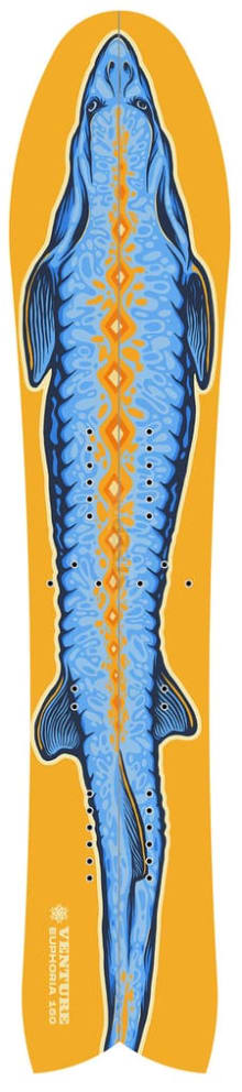 "A powder hungry shape for the deepest days - snorkel not included. With an arsenal of powder specific features, the Euphoria reaps the deep and slashes on a dime, but our use of quadratic sidecuts means it still rails turns on hardpack, making that lower mountain chunder almost as fun..."