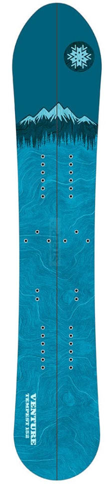 "Our shredding sisters need solid equipment that's up for every challenge, so Venture proudly offers the Tempest - a women's specific freeride board. We use the same bomber materials and construction techniques that Venture is known for, while adding women's specific flex. The Tempest's moderate taper and a softer nose..."