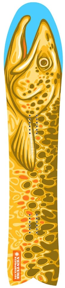 "A powder hungry shape for the deepest days - snorkel not included. With an arsenal of powder specific features, the Euphoria reaps the deep and slashes on a dime, but our use of quadratic sidecuts means it still rails turns on hardpack, making that lower mountain chunder almost as fun..."