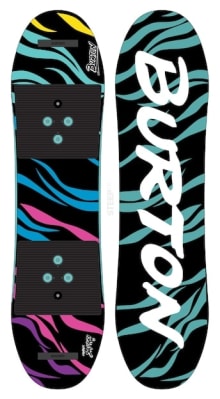 The kids' Burton ChopperĀ® Snowboard is the ticket for tykes who want to start snowboarding and quickly learn the basics. What makes it so perfect is the beginner-friendly combo of a convex base with upturned edges and the softest flex possible so that even the lightest weight riders can master turning and stopping. The catch-free feeling continues with a flat profile from nose to tail that's extra stable for better balance and board control. Attach the Riglet accessory to the nose or tail of the 80-120cm sizes to tow them around 'til they're comfortable enough to add bindings.