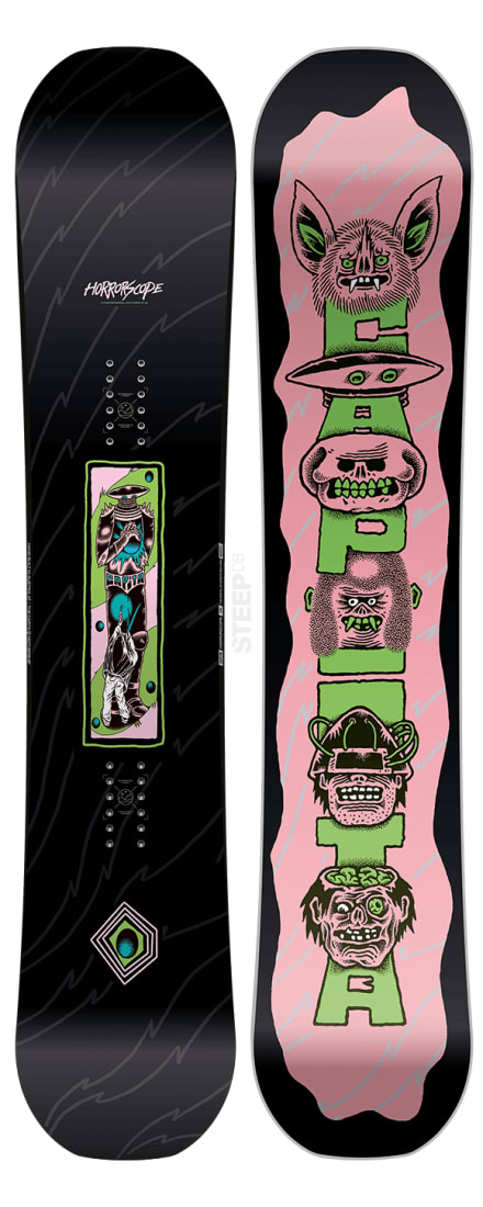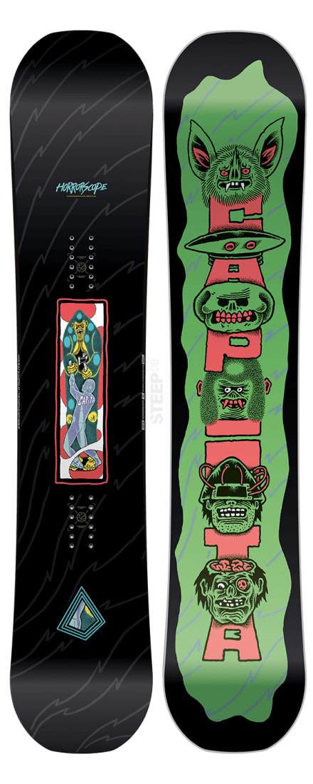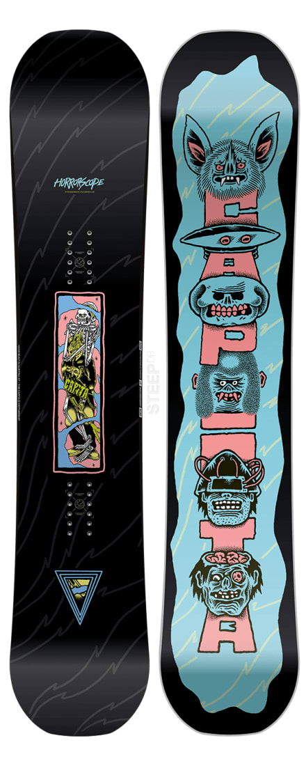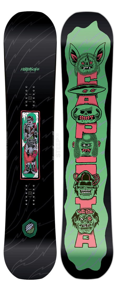"Team ridden and team designed, the Horrorscope is must-have deck for your quiver. It is fun, maneuverable, easy to ride, and capable of big things. With a big reputa- tion and a modest price, the Horrorscope remains one of the most sought-after urban and park boards in the game. Featuring a throwback blunted shape with a shorter tip and tail for decreased swing weight, the Horrorscope allows you to size down without losing any performance. Always evolving, the Horrorscope series has been upgraded for 2019 with a new durable SuperDriveTM EX base."
