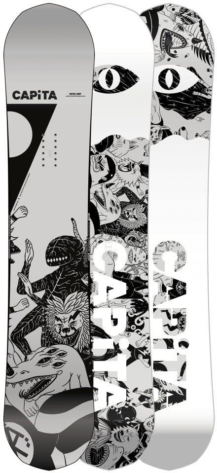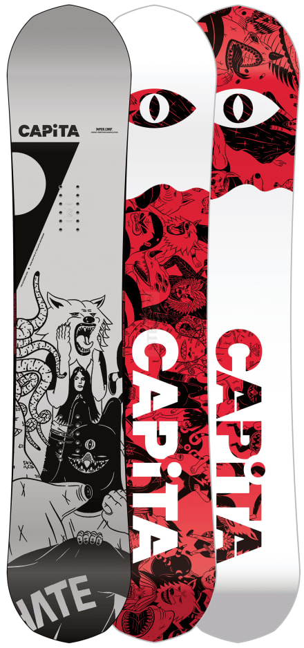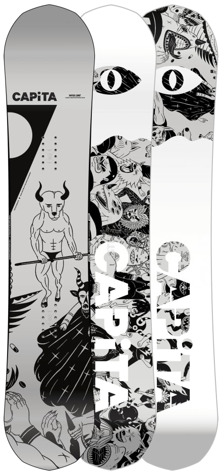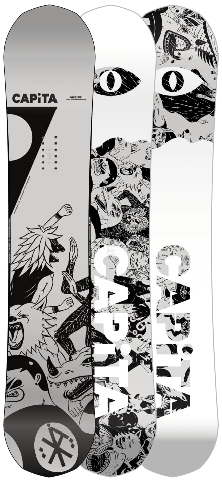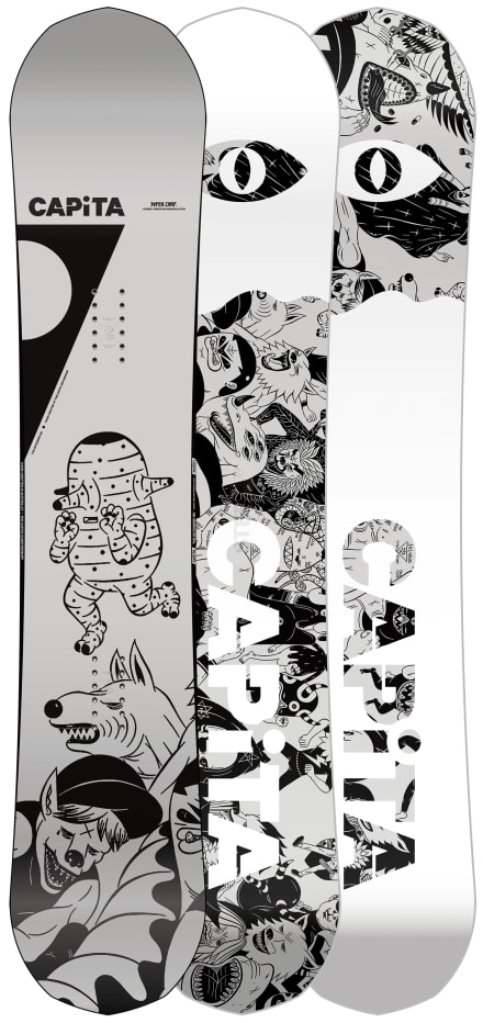 "As a CAPiTA team favorite, The Outsiders crushes park jumps, side hits, and freestyle features around the globe. With a revolutionary camber configuration featuring small zero-camber sections integrated into specific sidecut blend zones near the tip and tail, you can enjoy the pop and power of traditional camber with unmatched stability at high speeds. For 2021, the superpowers of The Outsiders just got supercharged. With an all-new Hover Core™, an upgraded HyperDrive™ sintered base, and two new wide sizes to choose from—The Outsiders maximizes the speed and power possible from a lightweight and energetic board."