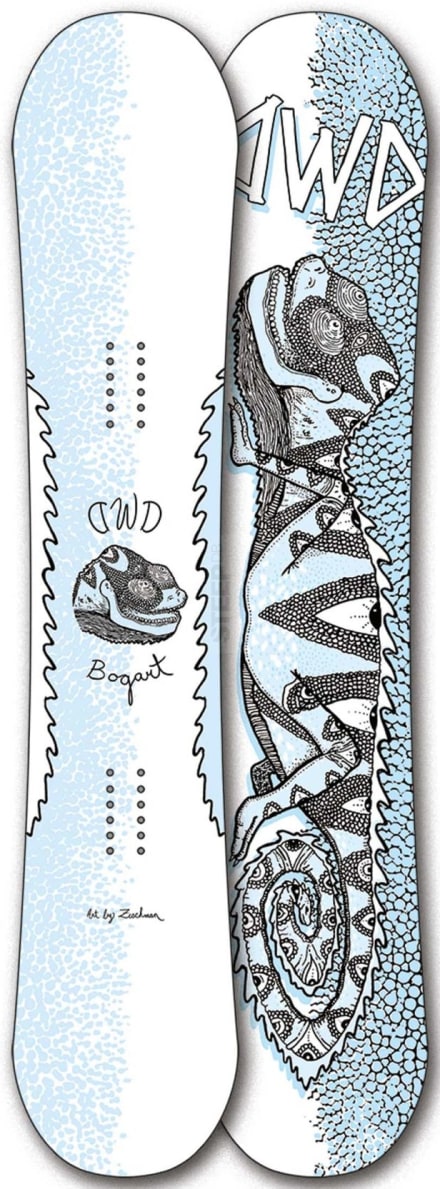 "The Bogart board might look unassuming at first, until you get it out on the snow... that's where it comes to life and shows its true colors; literally, in the case of this season's graphic! Color changing ink turns blue when it's exposed to UV light! This freestyle gem for men and women alike has been hiding right in front of you the entire time."