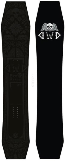 "Back and still in black!!! When powder is what you’re hunting the Pow Reaper is the only board you need. The Riser camber profile combined with a carbon V in the nose and tapered sidecut means you’ll be slicing you’re way through the mountains with ease. There’s only one friend on a powder day… the Pow Reaper."