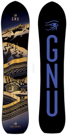 "Jamie Anderson has a Free Spirt. That is the secret to her success in competitions around the world. This is the board she chooses when she’s not competing, but living life to the fullest, with no limitations, no judges, no boundaries. Her Free Spirit floats in pow, stomps big landings, and navigates variable terrain with effortless ease. It shreds the resort and beyond with a C3, camber dominant contour, Magne-Traction®, and a volume shifted profile. Eco sublimated graphics on our clear nylon bio beans topsheets feature Sarah King’s magical mountain scene and our sustainably harvested FSC certified wood cores. The Free Spirit floats above it all, like Jamie, in a state of zen, at one with the snow and in harmony with nature."