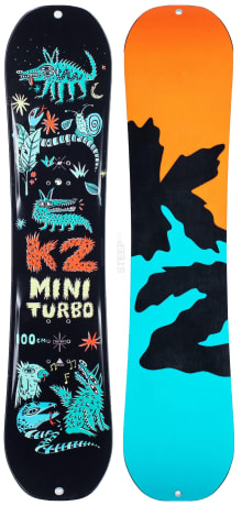 "Start ‘em young and stoke ‘em out. We made sure that the Mini Turbo pivots on a dime and turns like a champ to ease the learning curve on your grom’s path down the mountain. A true twin shape with a symmetrical feel helps your grom focus on what’s important - having fun!"