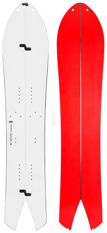 "The split version of our dear Dart is great for drawing fresh soul turns in soft snow be it powder, corn, or slush. Although soft snow is its preferred environment it performs surprisingly well in harder conditions. The wide frame, along with its setback and taper, offers maximum float and a relaxed riding experience in deep conditions. The extra width also reduces toe and heel drag, enabling low carves on hardpack snow. The swallowtail offers playfulness out the back, but still has the stability and torsion you need to hold an edge throughout turns. Two extra edges on the inside and a split-specific flex pattern offer perfect grip in climb-mode and when crossing icy passages. It features Union clips, nose and tail hooks, and the voile insert pattern (most widely used in the industry). The nose holes secure our U-Hook skin mounting system. The Dart Split is the perfect shape for riders who are looking to focus on their turning style in the backcountry, while driving out of turns with max speed."