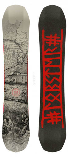 "Dark magic happens when Vikings collaborate. We are pumped to work with the realest of real Vikings, Danny Larsen. His art is featured on this brand new directional twin for all mountain freestyle cruising. It has a nice responsive flex for boosting airs and Sidekick for extra pow float."
