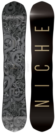 "The total package. If your day consists of riding anything from powder to groomers to park laps, this is your snowboard equivalent to a swiss army knife. The Magne-Traction will give you unparalelled control in any snow condition, and the multi-camber will give you stability on groomers, float in pow and greasy presses. Basalt stringers and a mid-stiff flex on this directional twin add a ton of pop to your ride. With a super fast sintered base, the award-winning Aether is ready to tacklet the entire mountain."