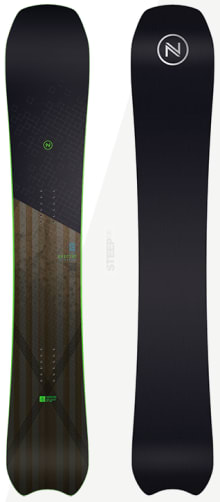 "The Spectre shares the same shape and design theory as the Spectre Carbon, mixing our demanding Alpine performance standards with all mountain versatility. To be ridden with plenty of positive angle on the front and back bindings, with both soft and hard boots, this board is built for riders who want to lay down serious carves on slope, and do the same in the backcountry when they feel the need. It features: our N-Tech construction, an innovative combination of cap and sandwich constructions; our unique Absorbnid top layer that absorbs unwanted vibrations; our advanced camber, with 8 to 10cm of flat transitions at the contact points behind the nose and tail, delivering the ultimate in precision, edge hold and stability; and the N 9000, our fastest, most durable base, produced with carbon nanoparticles."