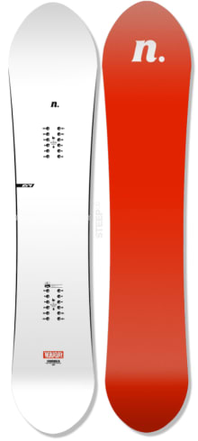 "The five carbon fibers strengthen respond on movements. The crossed carbon provides support for cruising on powder. It is made with camber+rocker in between the bindings and it is tilted on the nose for easy controlling. Its honeycomb core technology makes this style so light and playful as a powder board."
