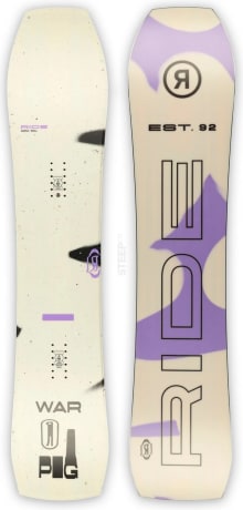 "The WARPIG sees the entire mountain as an opportunity to thrash at full speed. Slim Wall is the evolution of Ride’s Roll-in Construction to its most extreme limit. By creating a fully 3-D composite structure over our proprietary Slimewall® material, this revolutionary technology results in more efficient energy transfer, lighter weight constructions, and even better damping. The WARPIG shape has won multiple snowboard tests for both all-mountain and freestyle categories, which is a rare feat in modern snowboarding. The versatility of the WARPIG is unmatched. This board will allow you to lay down carves, hit huge jumps and ride big mountain lines. A Tapered Bi-Radial Sidecut maximizes grip and allows the WARPIG to transition from edge-to-edge like a traditional narrow snowboard while getting the float and stability of a wider modern deck. A Performance™ Core combines Aspen, Bamboo, and Paulownia wood to provide the perfect balance of strong and light. The WARPIG is a battle-tested all-mountain board for intermediate to advanced riders who aspire to crack the skull of winter and feast on its delicious pink insides."