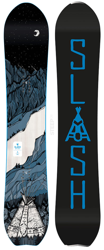 The voluminous nose has ample float and the subtle rocker from the front binding forward makes it easy to keep the tip up. The tail’s half crescent shape and slight rocker naturally sinks for an easier, more balanced riding position in steep and deep terrain. Added Kevlar and carbon fiber Landing Strips from the inserts to the tips amplify end control for confident carves, loftier airs and softer landings. and reduced chatter at speed.
